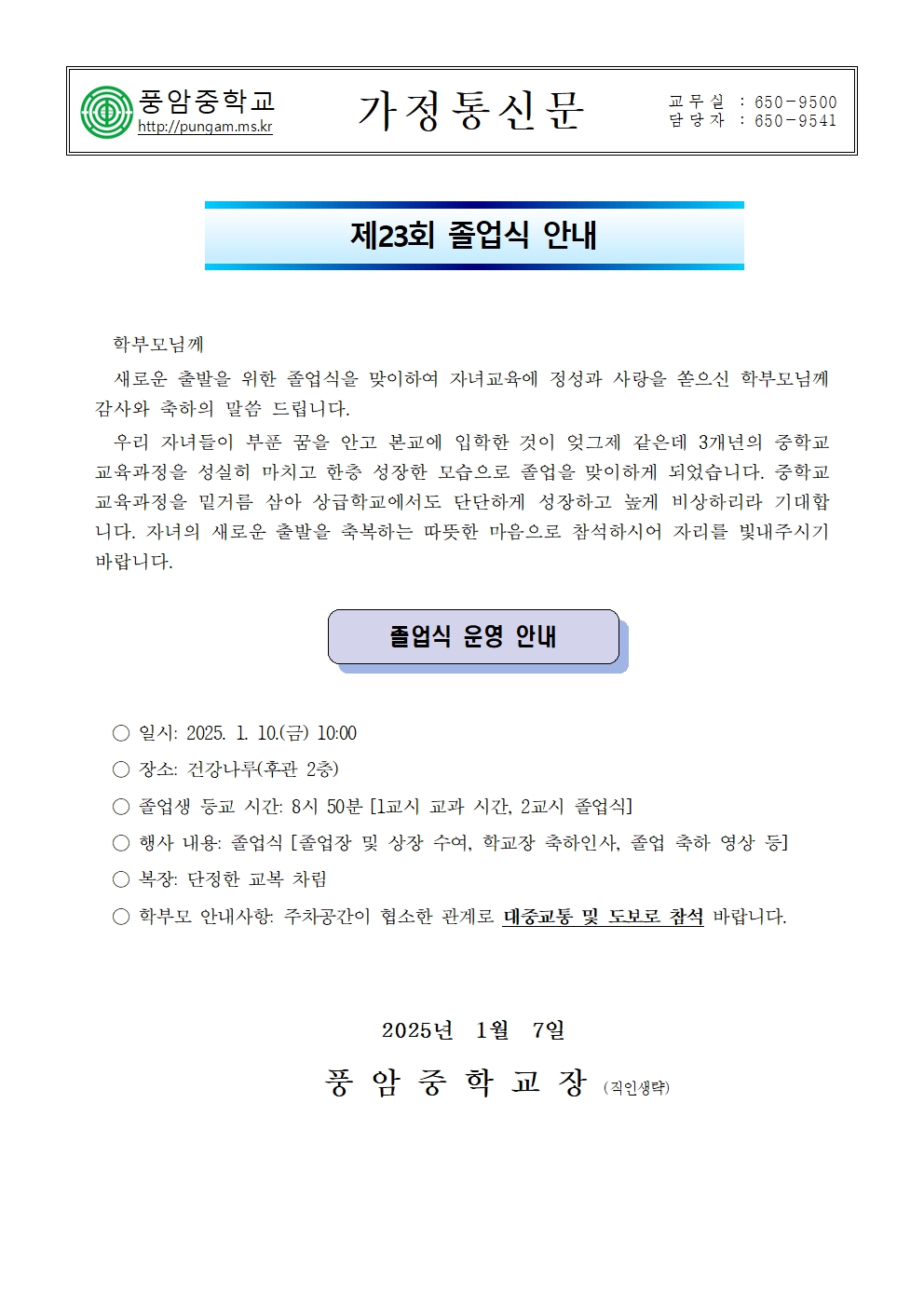 제23회 졸업식 안내